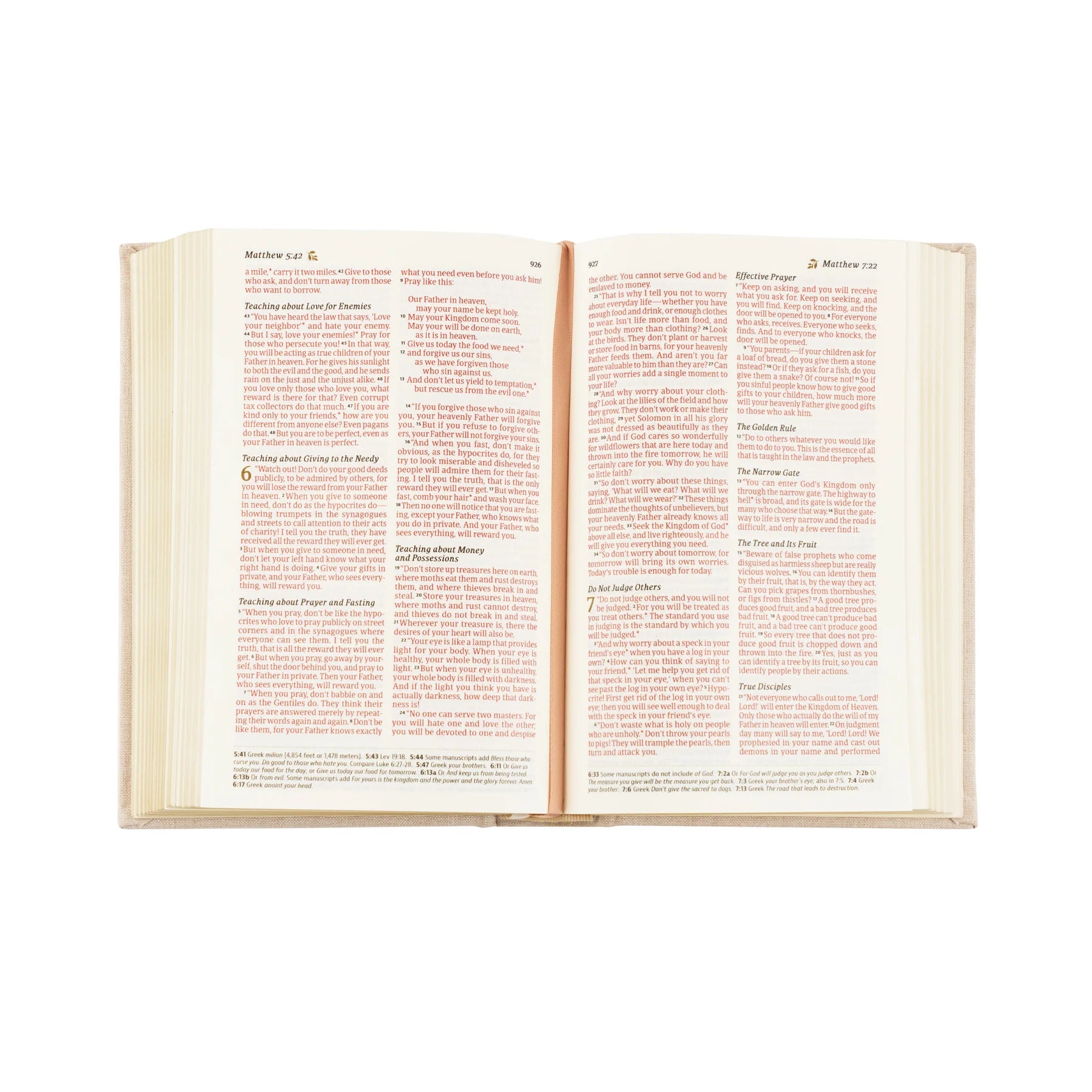 The Casablanca Theme Compact NLT Bible from Hosanna Revival is designed for life on the move—perfect for church, travel, study groups, or daily reading. While many compact Bibles use 6–7 point fonts, this edition features Hosanna Revival’s custom 8-point typeset, offering improved readability without sacrificing portability. Bound in a beautifully embroidered white cover with gold-gilded edges, this Bible pairs elegance with everyday functionality.