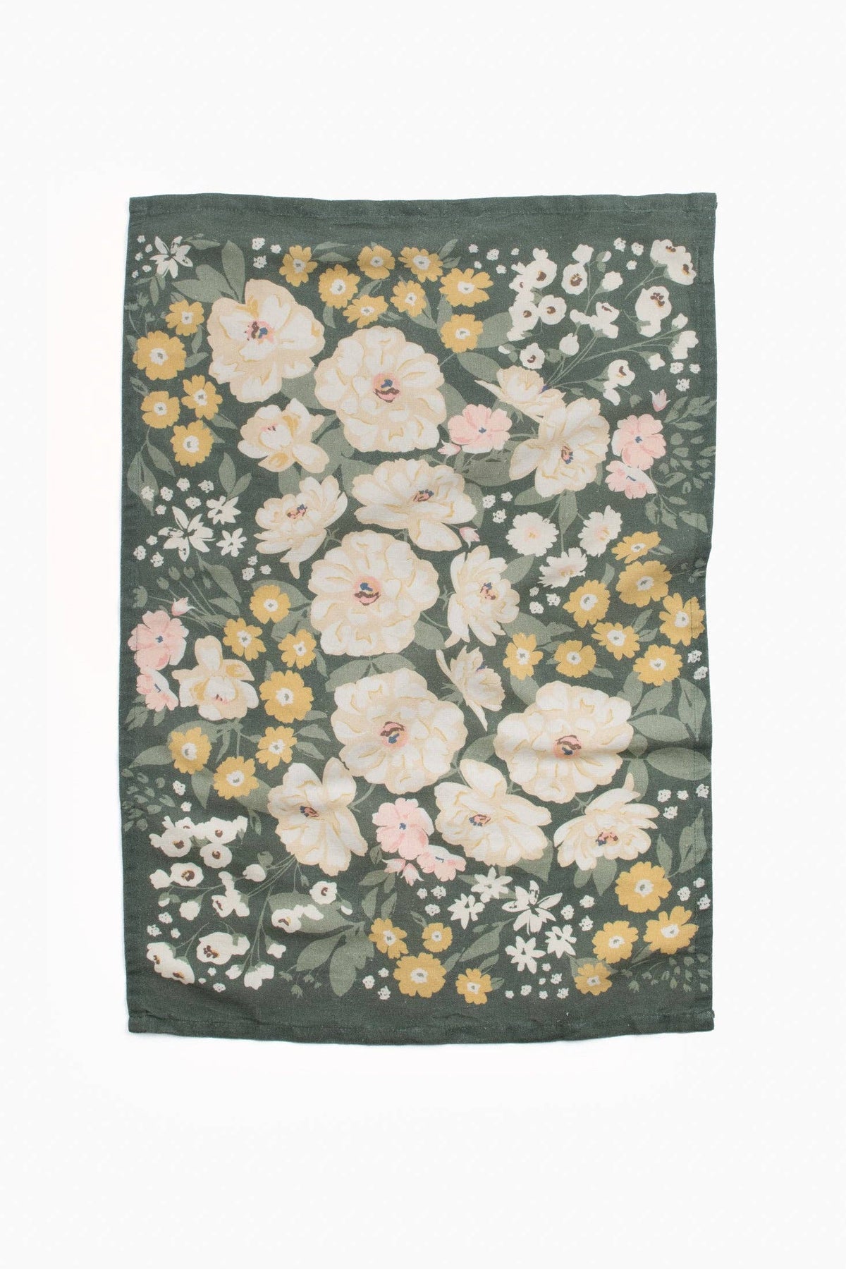 Celebrate simple beauty with our Lush Meadow Tea Towel. A moody green backdrop is an invitation for calm, and the florals bring a soft, vintage feel to any space. The linen-cotton blend makes it gentle, absorbent, and endlessly helpful, from drying dishes to decorating your kitchen with a garden-inspired touch. Each Homebody Tea Towel features a hanging loop and comes wrapped in a twill ribbon, making it a thoughtful gift or delightful treat for yourself. This listing is for one tea towel.